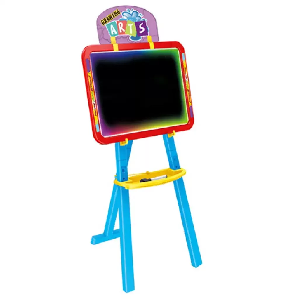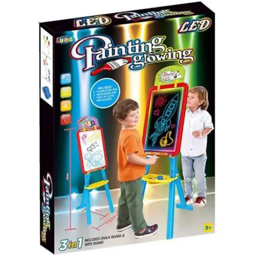 Szerezd be gyermeked számára ezt a különleges, kétoldalas panellel ellátott rajztáblát, amelynek köszönhetően a rajzolás egy teljesen új élménnyé válik a LED világítás által. Az alkotáshoz azonnal használható, mellékelt fluoreszkáló tollakkal és táblafilcekkel teheti próbára kreativitását. A tábla LED világítása elemmel működik (az elemek nem tartozékok). Kompakt méretének köszönhetően már három éves kortól ajánlott, így a legkisebbek is könnyedén elkezdhetik használni.
