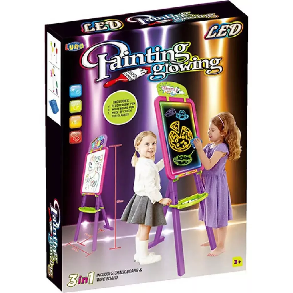 Szerezd be gyermeked számára ezt a pink színű, kreatív, kétoldalas rajztáblát, amely változatos módon használható! A LED világítással ellátott tábla lehetővé teszi az igazán különleges alkotásokat. A csomag tartalmaz fluoreszkáló tollakat és táblafilceket, hogy a rajzolás öröme azonnal kezdetét vehesse. A LED világítás elemmel működik (az elemek nem tartozékok). Kompakt méretének köszönhetően már három éves kortól biztonságosan használható, így gyermeked hamar megteheti első lépéseit a kreativitás útján.