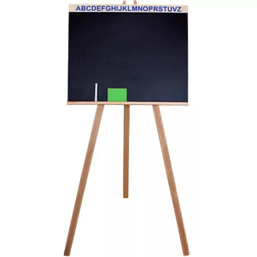 Az ábécé betűivel díszített fekete rajztábla ideális választás a gyerekek számára, hogy fejlesszék kézügyességüket és gyakorolják az iskolában elsajátított betűket. A gyerekek fekete-fehér vagy akár színes rajzokat is alkothatnak rajta, amelyeket használat után egy nedves szivaccsal könnyedén letisztíthatnak, így a tábla újra és újra használható. Ez a rajztábla kizárólag fából készült.