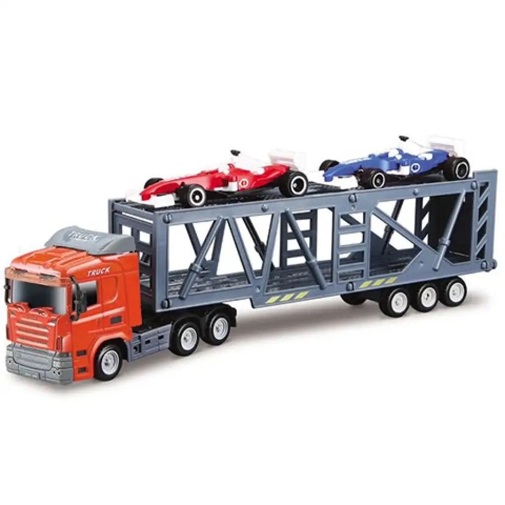 Szinte minden kisfiú rendelkezik néhány kisautóval, melyekkel nemcsak versenyeket játszhat, hanem izgalmas kalandokat is megélhet. Ez az autószállító kamion garantáltan nagy kedvenc lesz, hiszen a klasszikus nyergesvontató utánfutóján több kisautó is elfér, ráadásul a csomagban két versenyautó már megtalálható rakományként! A Mondo Motors 1/64 méretarányú kisautói kiváló részletességgel készültek, élethű festésüknek köszönhetően bármely gyűjtemény különleges darabjai lehetnek, és még szórakoztatóbbá teszik a játékot.