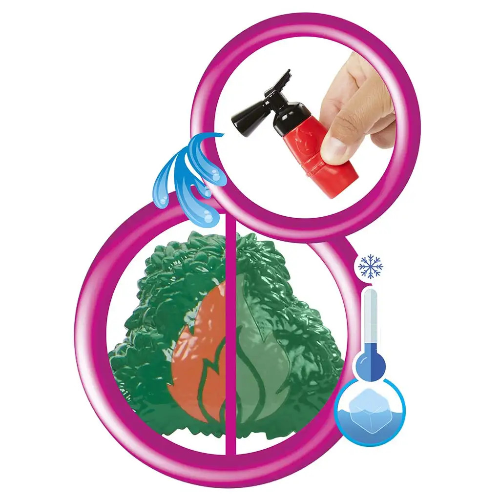 A szett központi eleme a tűzoltó állomás, amely számos izgalmas funkcióval várja a gyerekeket. A forgó tűzoltórúd segítségével Barbie hűséges dalmata kiskutyája pillanatok alatt lecsúszhat az állomásról, hogy a mini tűzoltóautóval a helyszínre siessen. A játékszett különlegessége a színváltós „tűz” elem, amely a faágakra illeszthető – meleg vízzel a lángok megjelennek, hideg vízzel pedig könnyedén elolthatók. Ez az interaktív funkció igazán élethűvé és izgalmassá teszi a tűzoltós szerepjátékot.