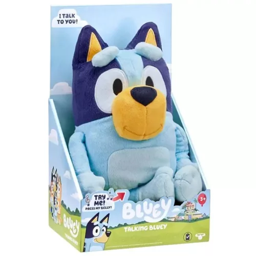 A Bluey beszélő, interaktív plüss minden kis rajongó álma, aki szereti a népszerű kék heeler kutyust és izgalmas kalandjait! Mostantól otthon is átélhetitek a mese legjobb pillanatait, hiszen Bluey nemcsak ölelni valóan puha, hanem beszél is hozzátok!