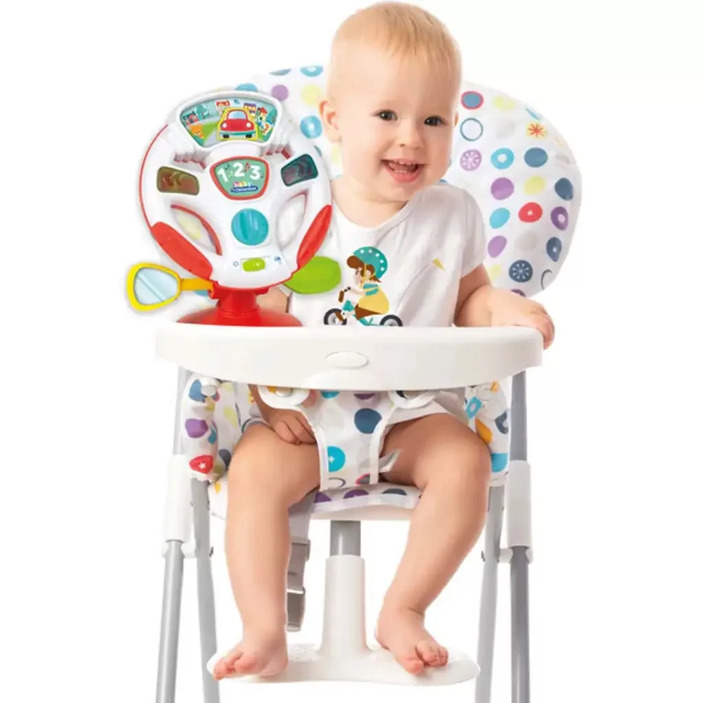 A Clementoni Baby Interaktív kormánykerék egy igazán szórakoztató és fejlesztő játék a legkisebb autórajongók számára, amelyet már 10 hónapos kortól ajánlunk. Ez a vidám, élénk színekben pompázó kormánykerék lehetőséget ad a gyerekeknek, hogy játékosan ismerkedjenek meg az autózás világával, miközben fejlődik mozgáskoordinációjuk és érzékelésük. A kormánykerék alján található tapadókorong segítségével könnyedén és biztonságosan rögzíthető sima felületekre, például etetőszékre vagy asztallapra, így a kicsik stabilan és biztonságosan játszhatnak vele.