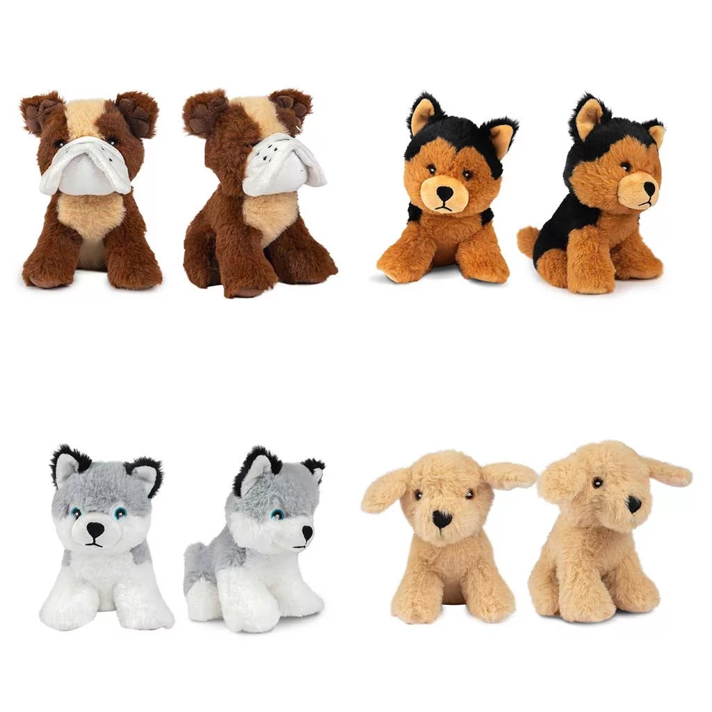 A különféle kutyafajtákat idéző plüssfigurák több változatban is elérhetők, például barna, bézs, fekete-barna vagy szürke színben. A részletgazdag kidolgozás, a kedves kis arc és a puha szőrzet igazán élethűvé és szerethetővé teszi ezeket a plüss kutyusokat.