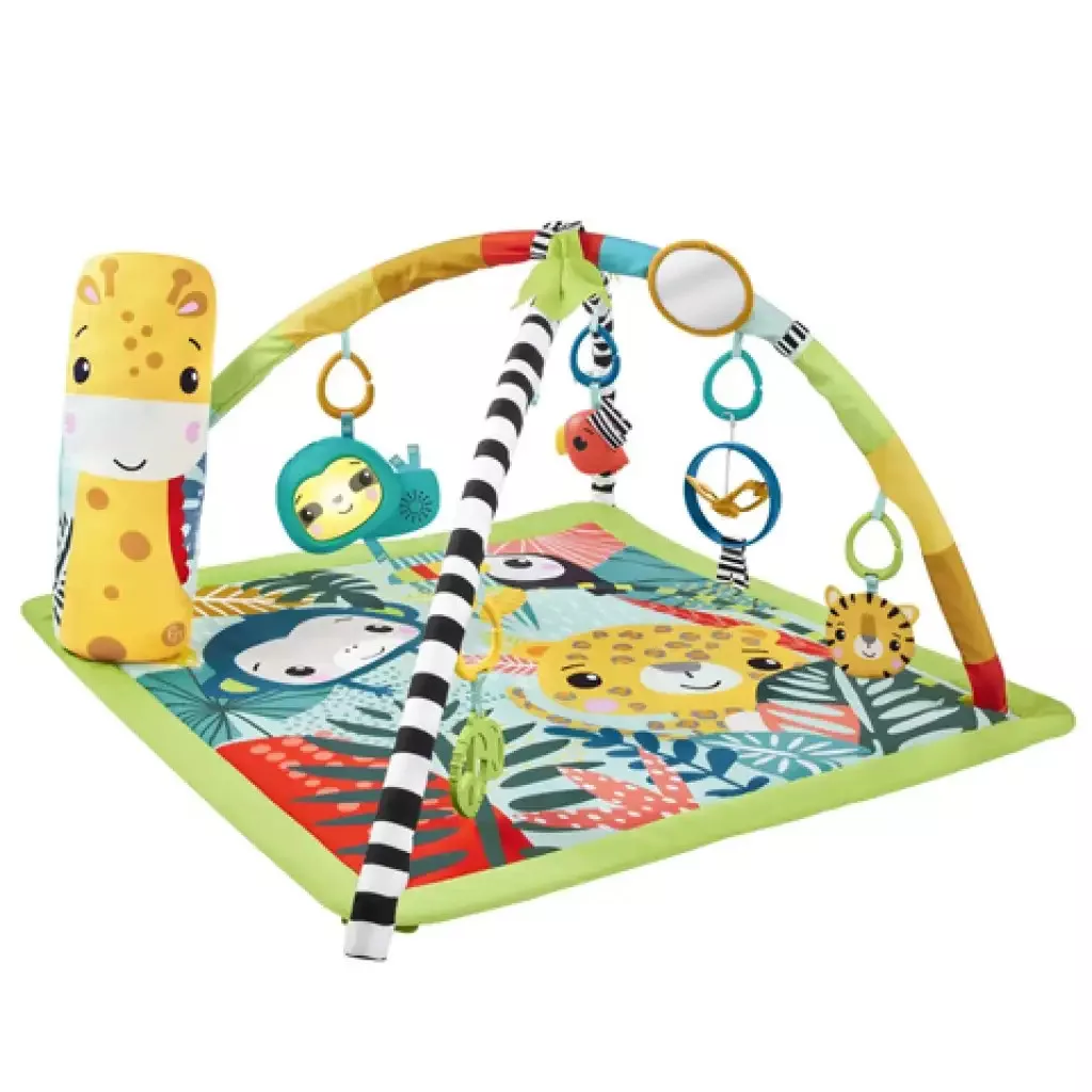 A kisbabák érzékszerveinek fejlesztése kiemelten fontos, ezt szórakoztató módon is támogatni tudjuk. A Fisher-Price játszószőnyege tökéletes választás, hiszen az esőerdők állatainak és növényeinek motívumaival lett díszítve. A szőnyegen különféle kiegészítők is helyet kaptak, amelyek az esőerdő világát hozzák el a gyerekeknek: tigrises, pillangós, madaras csörgők és rágókák, valamint egy lajháros lógó, mely dallamokat játszik le a kicsik szórakoztatására. A játszószőnyeg háromféle módon használható: feküdni lehet rajta háttal, beállíthatjuk úgy a keretet, hogy hason fekve csodálhassa a baba a lógó díszeket – ehhez egy zsiráfos pocakpárnát is tartalmaz a csomag –, illetve a keretet eltávolítva ülve is élvezhető a szőnyeg. A kiváló minőségű anyagból készült termék hosszú ideig hű társa lesz gyermekednek a játékos tanulások során.