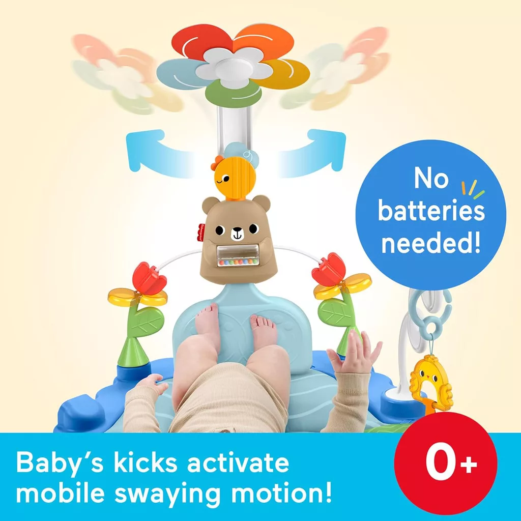 A Mattel Fisher Price Macis interaktív játszószőnyeg ideális választás, ha már újszülött kortól szeretnéd játékosan támogatni babád érzékszerveinek és mozgásának fejlődését. A puha, élénk színekben pompázó játszószőnyegen fekve vagy hason a kicsi felfedezheti a változatos textúrákat, hangokat és formákat. A középen elhelyezkedő macis elemhez kapcsolódó forgó virág és lelógó játékok a baba mozdulataira reagálnak, így minden érintés és rúgás újabb izgalmas élményt nyújt. Az interaktív elemek elősegítik a szem-kéz koordináció fejlődését, miközben a beépített tükörben a baba saját magát is megfigyelheti. Praktikus kialakításának köszönhetően elem nélkül működik, így bármikor készen áll a játékra, akár otthon, akár utazás közben.