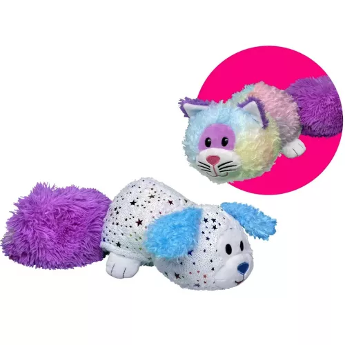 -Kifordítható plüssfigura, amely egy cica és egy csillagmintás kutyus között változtatható