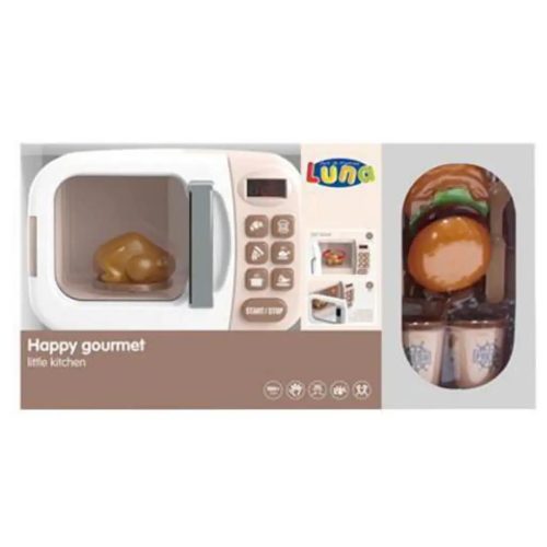 A mikrohullámú sütő napjaink egyik leggyakrabban használt konyhai eszköze, praktikussága és biztonsága miatt szinte minden otthonban megtalálható. Ez a játék szett nem csupán egy mikrohullámú sütőt tartalmaz, hanem étkészletet, egy hamburgert és egy sült csirkét is, hogy a gyerekek igazi főzőcskézős élményben részesülhessenek. A Luna márka magas minőségű háztartási játék készülékeivel a gyerekek berendezhetik játék szobájukat, kiegészíthetik konyhájukat, illetve kialakíthatják saját kis háztartásukat, miközben játékosan ismerkednek a házimunka világával.