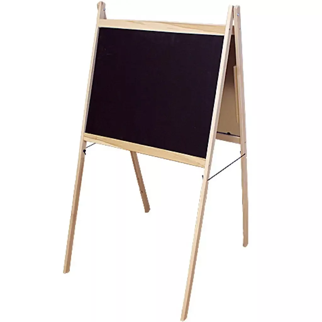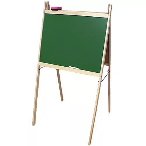 A zöld táblaoldal mágneses, így a kicsik mágneses betűket és számokat is elhelyezhetnek rajta, míg a fekete felületre színes krétával rajzolhatnak vagy írhatnak.