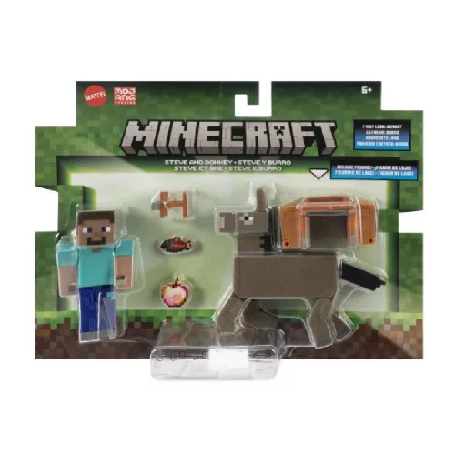A szett másik főszereplője a Szamár, amely a játék egyik leghasznosabb állata. Mozgatható lábakkal rendelkezik, és különféle kiegészítőkkel – például nyereggel és ládával – is felszerelhető. Ezek segítségével a gyerekek eljátszhatják az erőforrások szállítását, izgalmas utazásokat vagy akár veszélyes kalandokat is. A csomagban található kisebb kiegészítők, mint az étel- és tárgyelemek, még változatosabbá teszik a játékot, és segítenek a Minecraft világának jeleneteit újraalkotni.