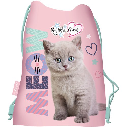 A My Little Friend cicás tornazsák ideális választás minden kis állatbarát számára, aki szereti a kedves cicás motívumokat és a vidám, színes kiegészítőket.