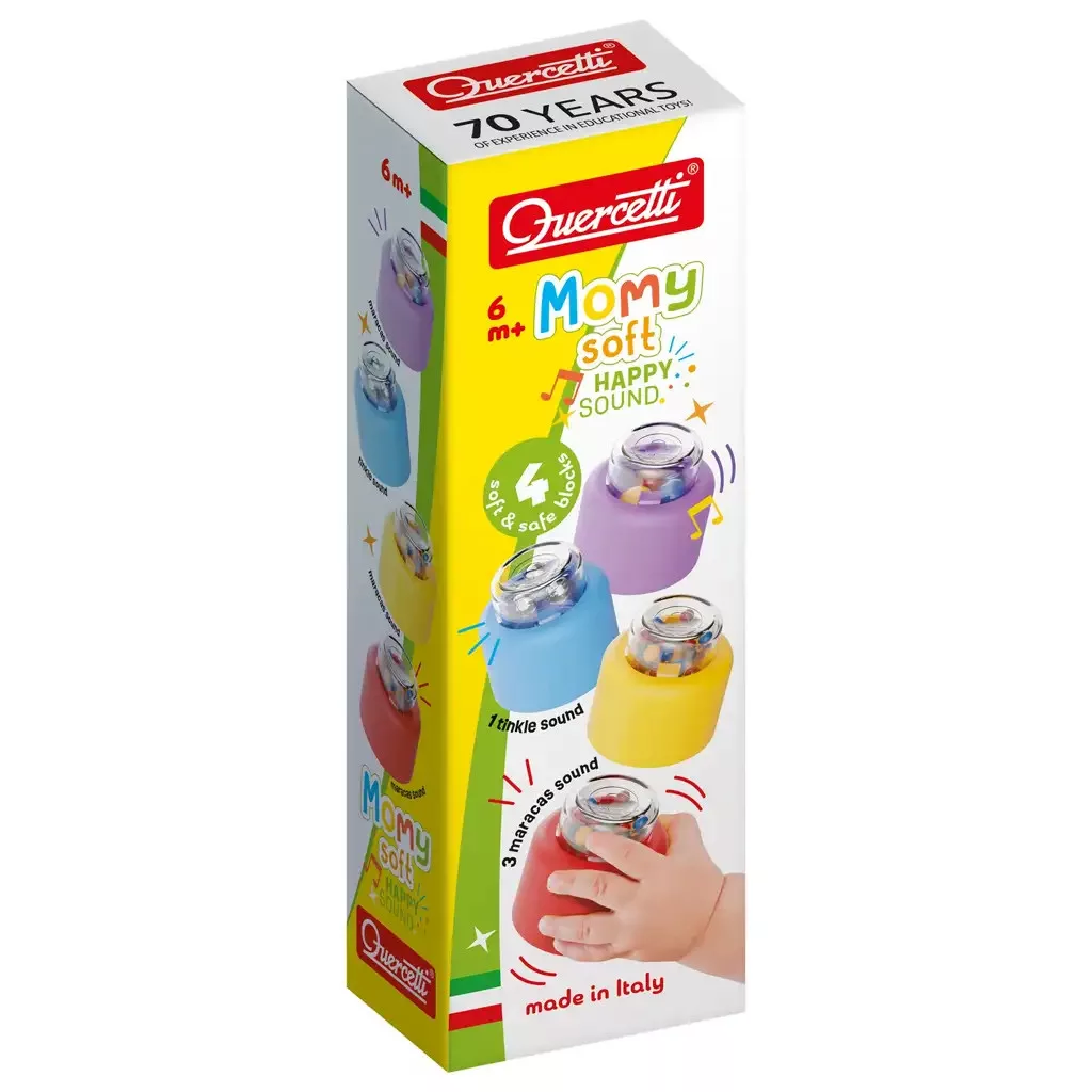A Momy Soft építőkockák puha, biztonságos, BPA-mentes anyagból készültek, így nem jelent gondot, ha a baba a szájába veszi vagy véletlenül leejti őket. Az olasz Quercetti gyártó kiemelt figyelmet fordít arra, hogy minden termékük megfeleljen a legszigorúbb biztonsági előírásoknak, így a szülők nyugodtak lehetnek a játék használata közben.