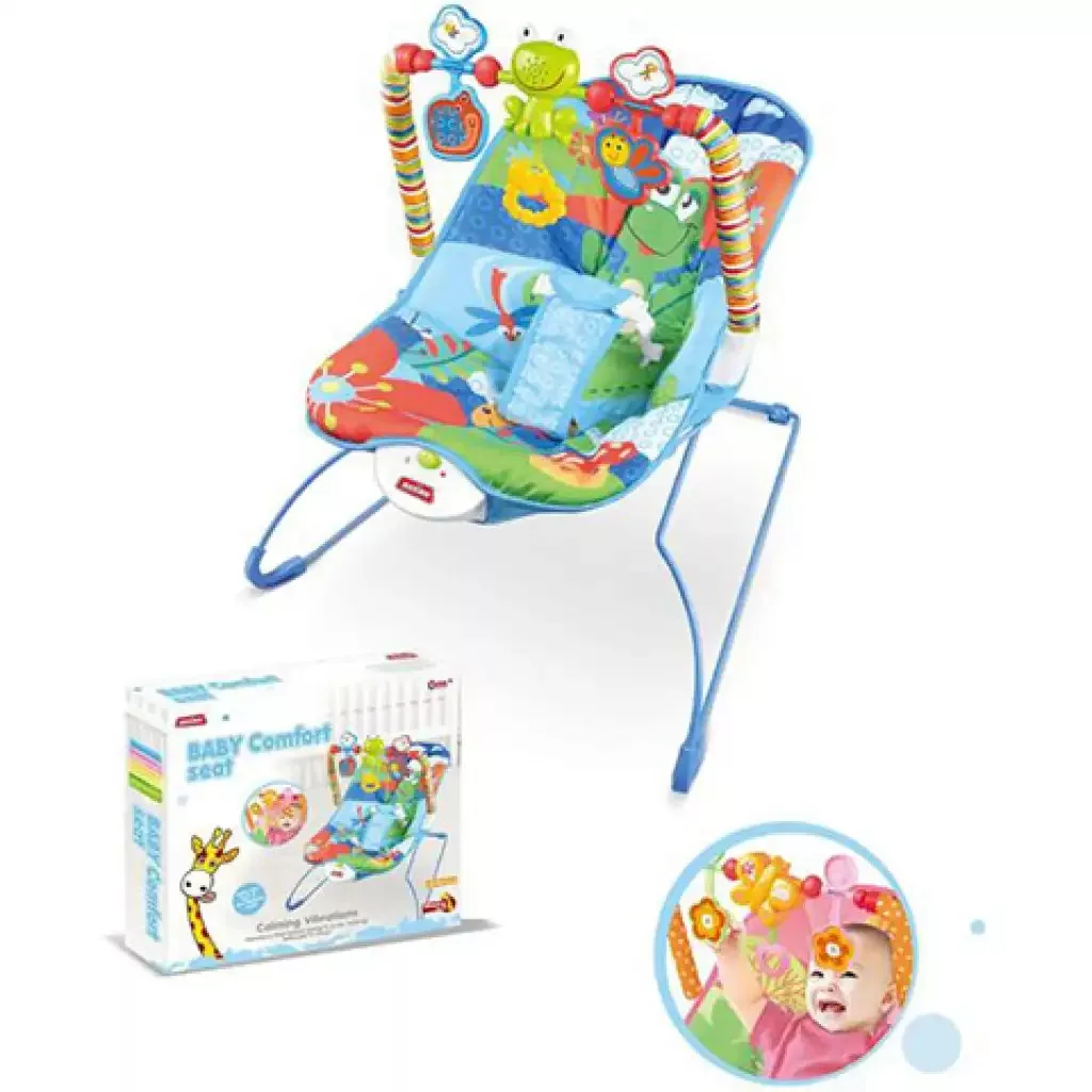 Lepd meg gyermeked egy igazán kényelmes, extra funkciókkal ellátott pihenőszékkel, amelyet már újszülött kortól használhat. Akár az étkezésekhez, akár egy délutáni szundikhoz, a pihenőszék tökéletes kényelmet nyújt. A kiegészítő elemek között csörgő és rágóka is található, amelyek a gyermeked feje fölött lógnak, lefoglalva és szórakoztatva őt. A szék rezgő és zenélő funkciói könnyedén elringatják kisbabádat, hogy gyorsan álomba szenderüljön.