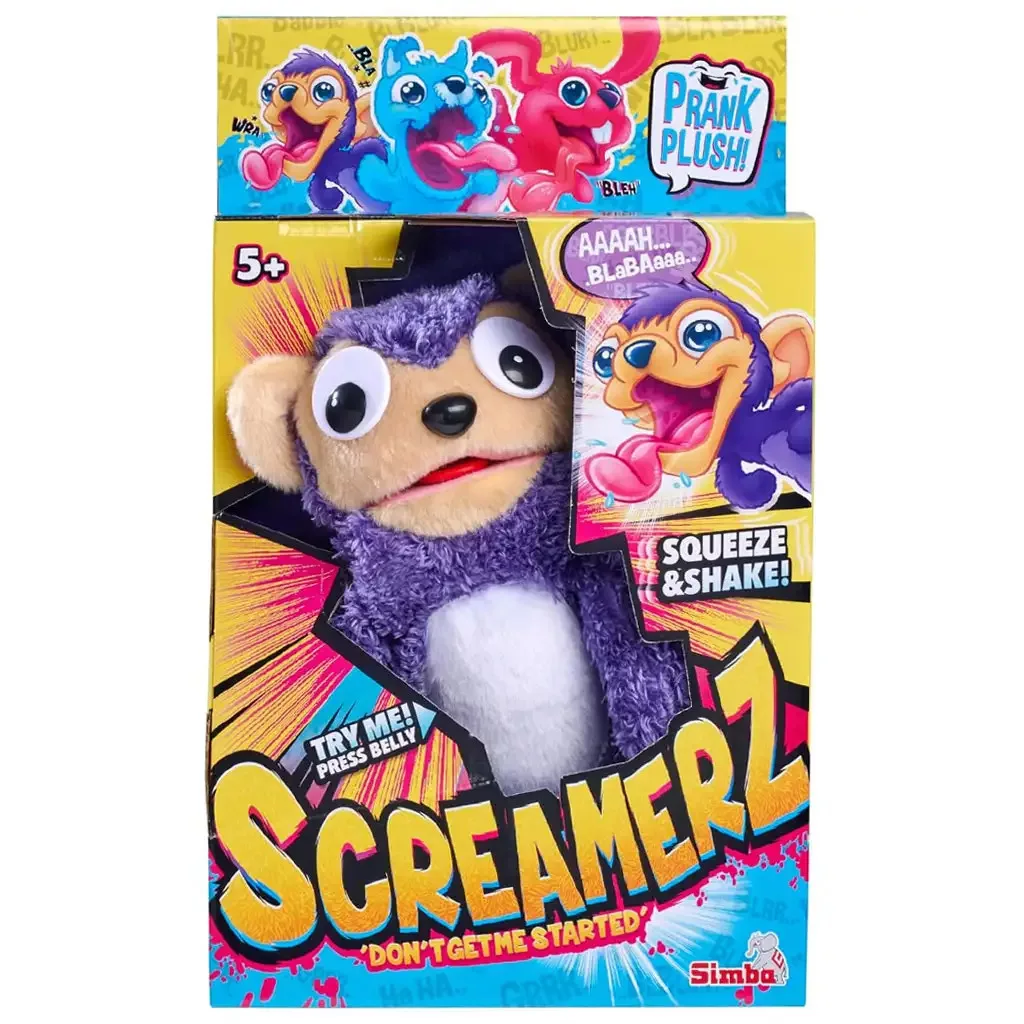 A Simba Toys ScreamerZ lila plüss majma igazán vidám és interaktív játék, amely garantáltan mosolyt csal minden gyermek arcára. Ez a különleges, szerethető plüssfigura feldobja a mindennapokat, és egyedi hangjaival szórakoztatja a kicsiket. A ScreamerZ majom különlegessége, hogy ha megszorítják vagy megrázzák, vicces, sikító hangokat ad ki, amelyek azonnal jókedvre derítik a gyerekeket. A majom aranyos, meglepett arckifejezése még különlegesebbé teszi ezt a játékot, amely hamar a gyerekek kedvencévé válhat.