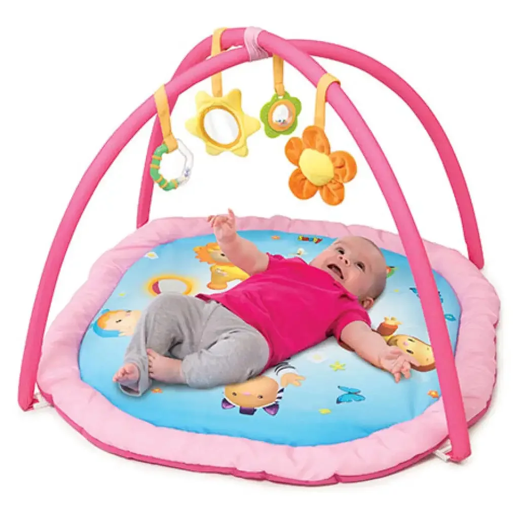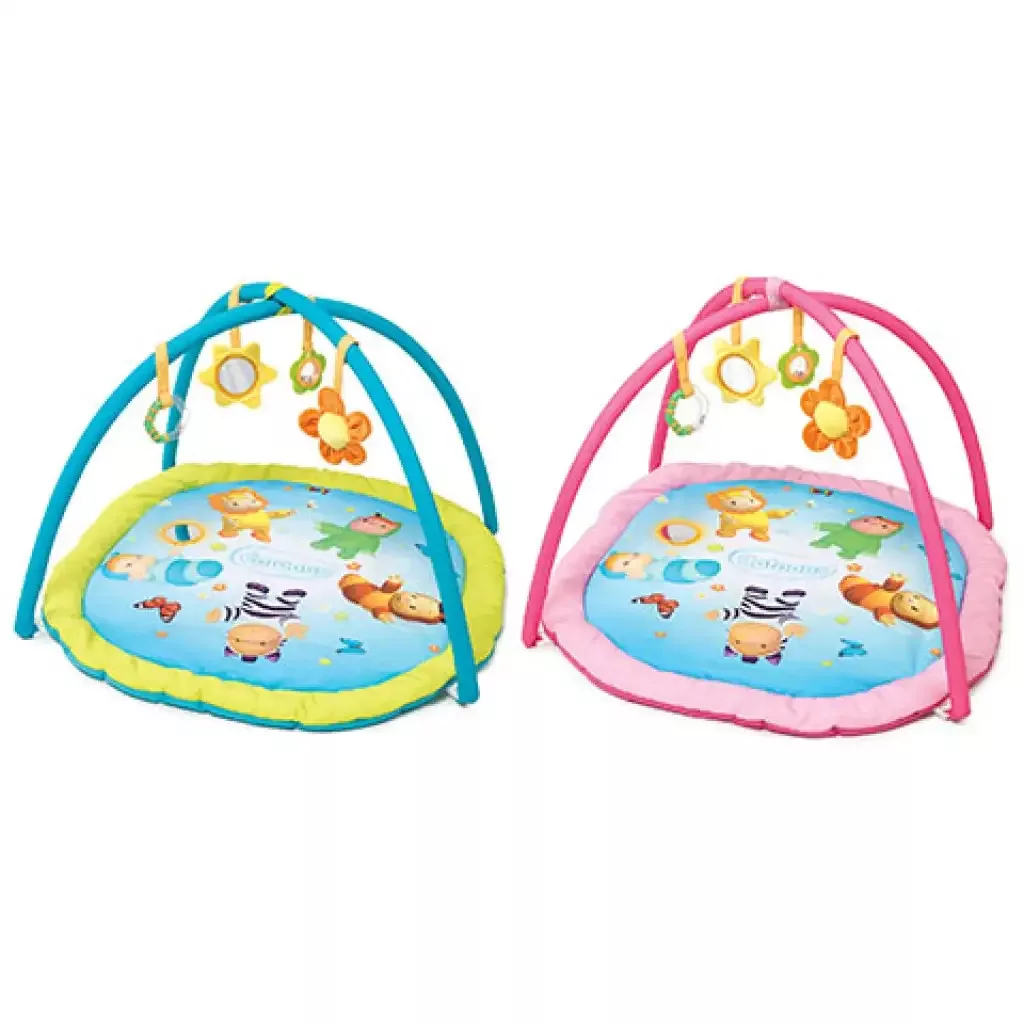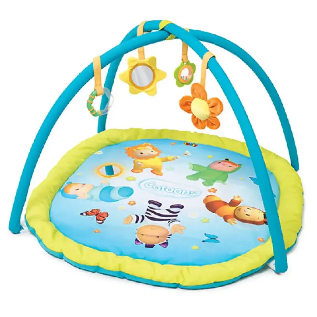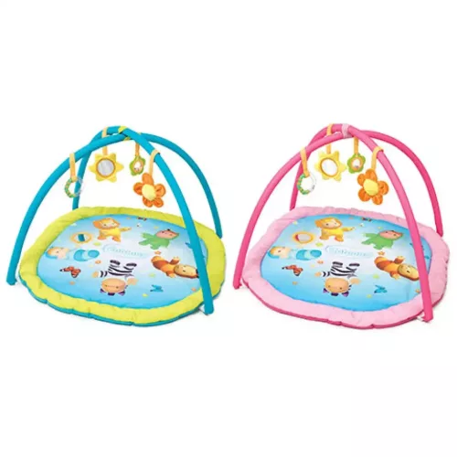 Ez a kiváló minőségű játszószőnyeg ideális választás a kisbabák fejlődéséhez, hiszen a puha szőnyeg felett átfutó íveken elhelyezett játékokkal ösztönzi őket a mozgásra. Az alá lógatható játékok segítségével a gyermekek próbálgatják képességeiket, fejlesztve ezzel izomzatukat és mozgáskoordinációjukat. A játékok élénk színvilága és izgalmas formái lekötik a picik figyelmét, miközben a különböző funkciók – tükör, csörgő vagy rágóka – változatos élményt nyújtanak számukra.