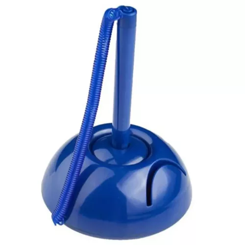 Ez a praktikus, elegáns asztali állványban elhelyezett golyóstoll kiválóan alkalmas irodai, recepciós vagy ügyfélszolgálati használatra. A kék tintával író toll hosszú, akár 1700 méteres íráshosszal bír, a flexibilis műanyag kábel révén pedig mindig kéznél marad, nem veszhet el. Ideális választás minden ügyfélforgalmi területre!