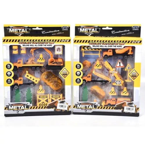 Építőipari játékszett kétféle változatban járművekkel és kiegészítőkkel