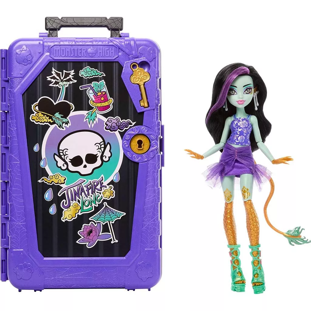 A Monster High Szörnyen Jóbarátok titkai: Rémes utazás – Jinafire Long baba igazi különlegesség minden Monster High-rajongónak, aki szereti a meglepetéseket, az átváltozásokat és a fantáziadús kalandokat. Jinafire Long most egy varázslatos utazásra indul, ahol minden kinyitott rész újabb titkokat és izgalmakat tartogat. A feltűnő, lila utazóláda nem csupán csomagolás, hanem a játék szerves része is: ahogy kinyitjátok, lépésről lépésre tárul fel Jinafire egyedi, stílusos világa.